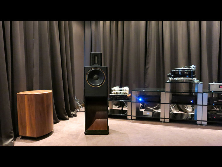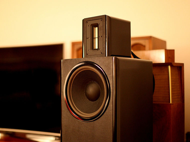 The main mid/bass driver is a WHT own special (crossoverless) 12" unit mated to the Neo ribbon tweeter. The speaker dimensions are deliberately living-room friendly while the combination of piano-gloss lacquer on the sides, real leather on top and front and exotic Jarrah wood for the scoop will appeal to even jaded interior decorators.